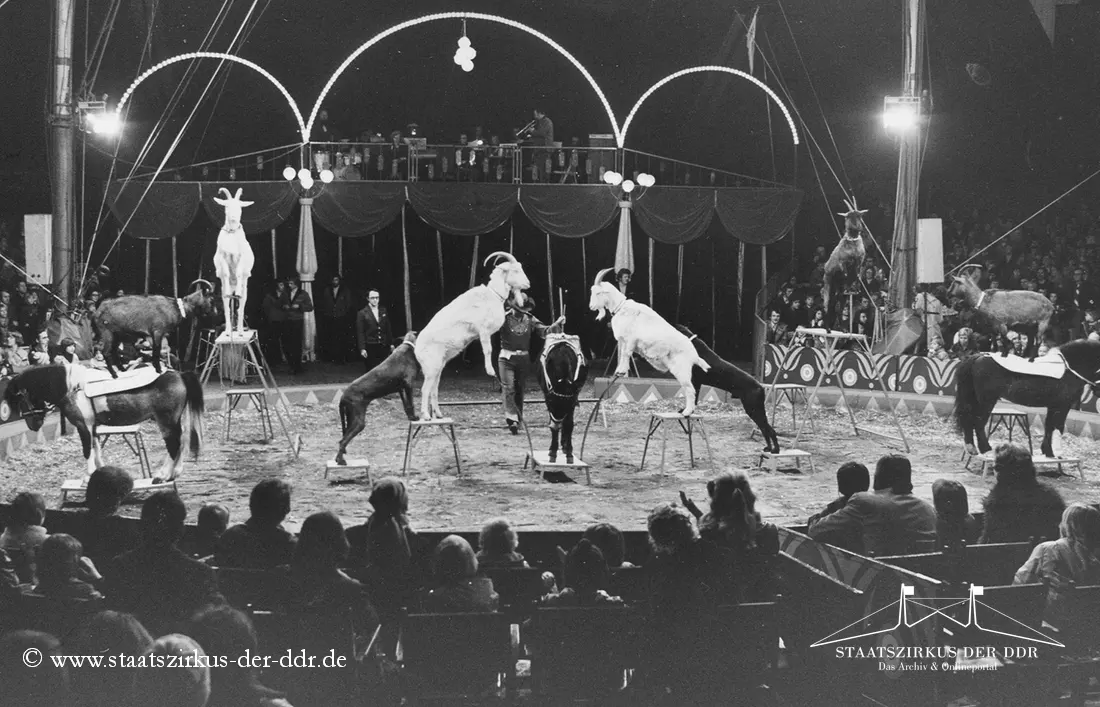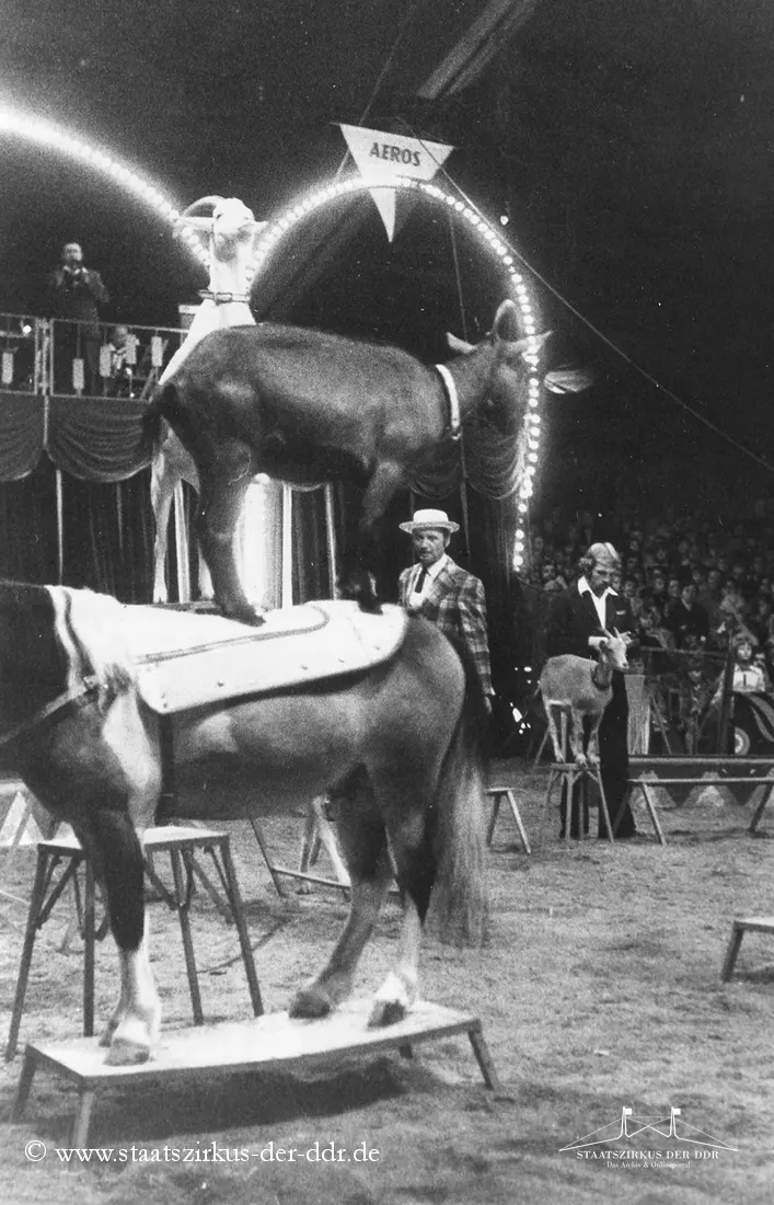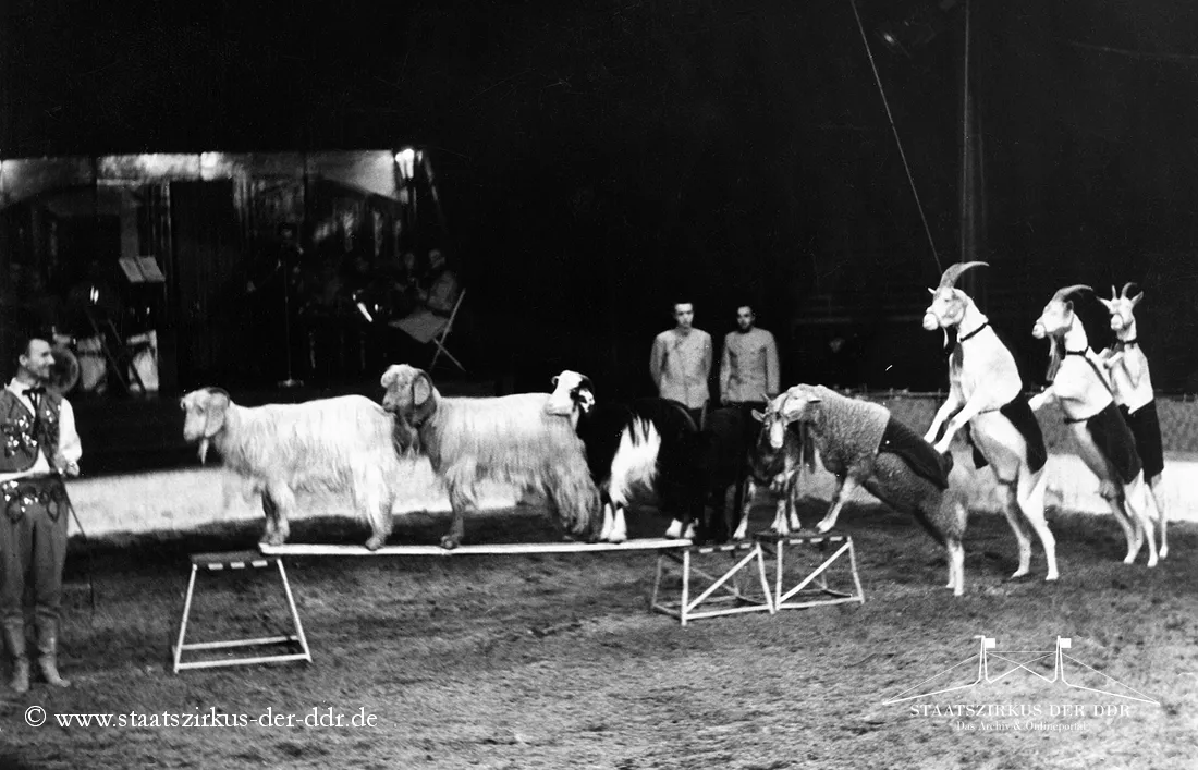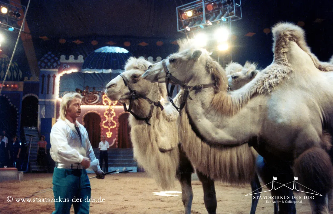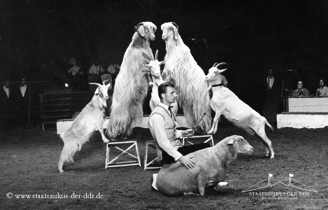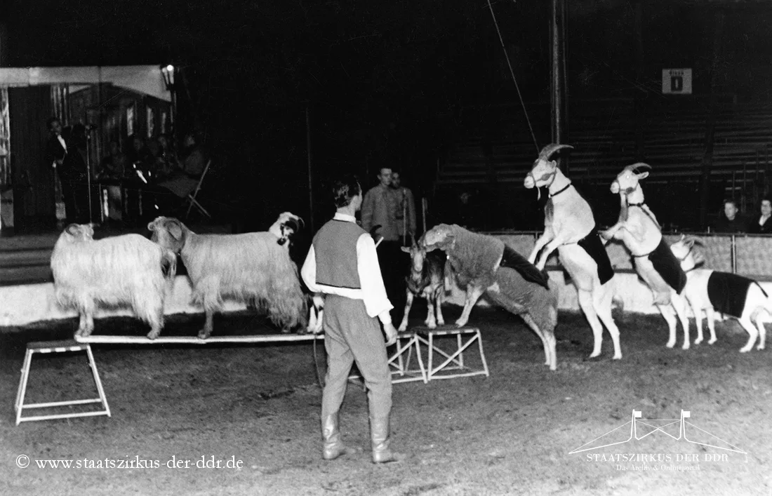In drei Jahrzehnten präsentierten der VEB Zentral-Zirkus und später der Staatszirkus der DDR eine große Vielfalt an Exoten- und sonstigen Dressuren in der Manege. Von Tiernummern mit Kamelen, Zebras oder Straußen bis hin zu ungewöhnlichen Dressurformen reicht die überlieferte Bandbreite. In dieser Übersicht zeigen wir euch ausgewählte Darbietungen. Da viele historische Informationen nur bruchstückhaft überliefert sind, haben wir auf die Erstellung eigener Datenblätter verzichtet.