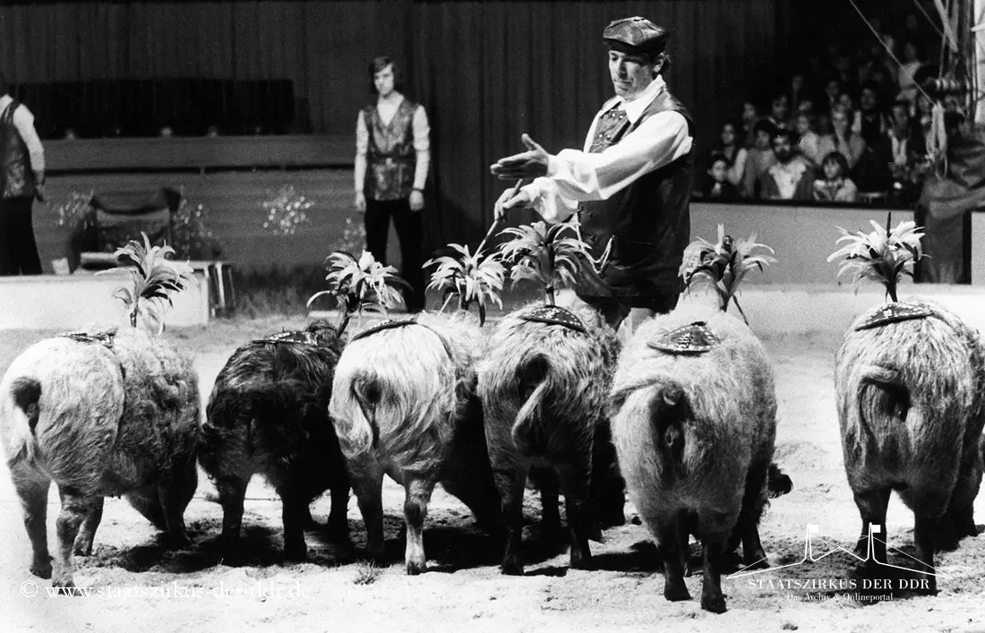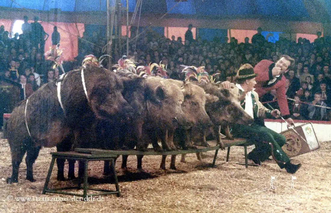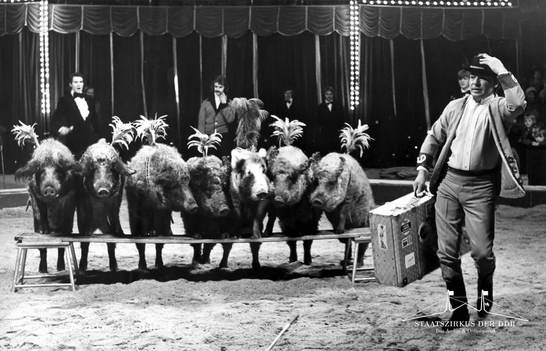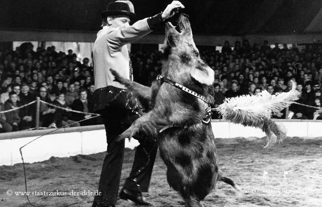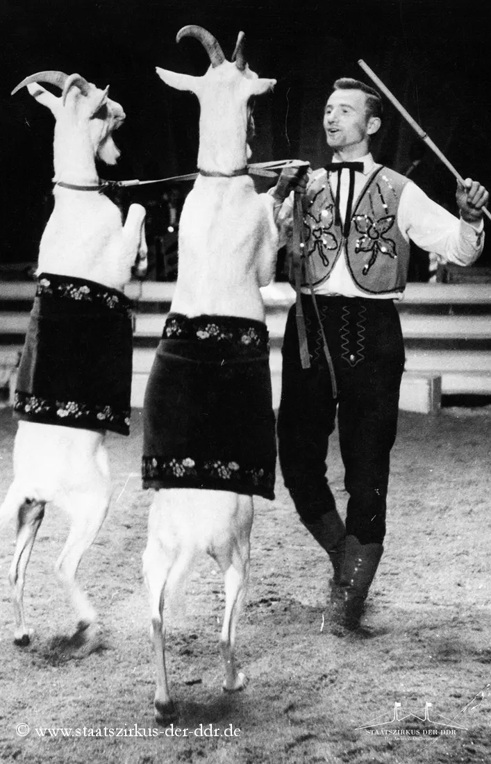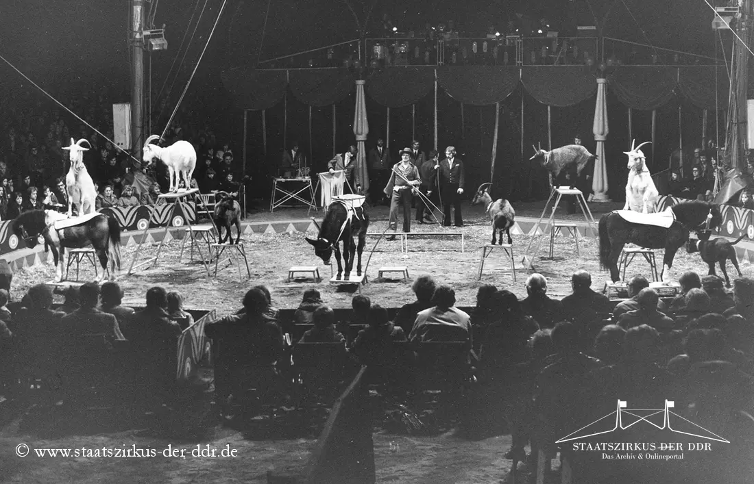In drei Jahrzehnten präsentierten der VEB Zentral-Zirkus und später der Staatszirkus der DDR eine große Vielfalt an Exoten- und sonstigen Dressuren in der Manege. Von Tiernummern mit Kamelen, Zebras oder Straußen bis hin zu ungewöhnlichen Dressurformen reicht die überlieferte Bandbreite. In dieser Übersicht zeigen wir euch ausgewählte Darbietungen. Da viele historische Informationen nur bruchstückhaft überliefert sind, haben wir auf die Erstellung eigener Datenblätter verzichtet.