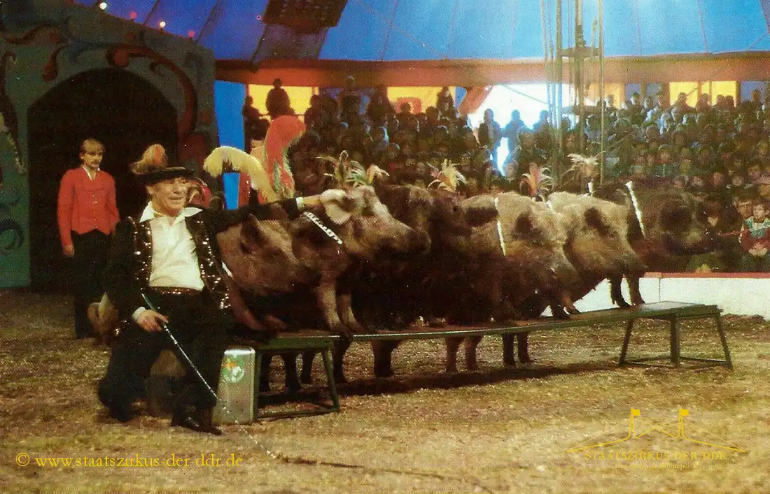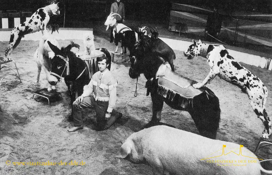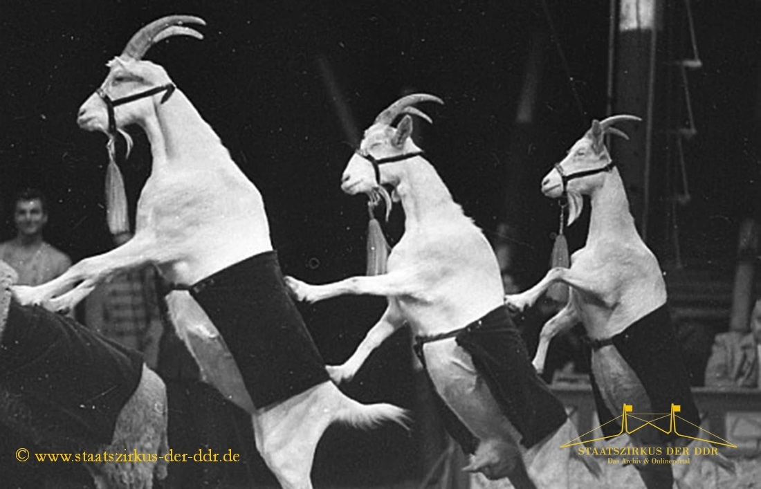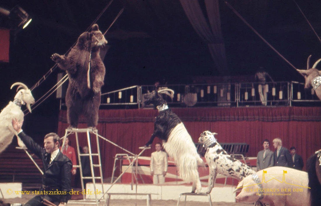 In drei Jahrzehnten präsentierten der VEB Zentral-Zirkus und später der Staatszirkus der DDR eine große Vielfalt an Exoten- und sonstigen Dressuren in der Manege. Von Tiernummern mit Kamelen, Zebras oder Straußen bis hin zu ungewöhnlichen Dressurformen reicht die überlieferte Bandbreite. In dieser Übersicht zeigen wir ausgewählte Darbietungen.